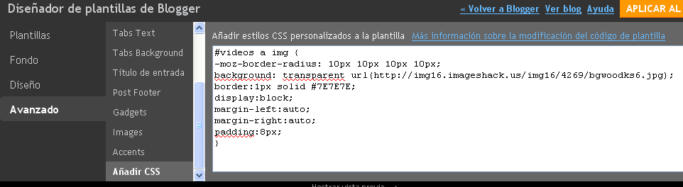 Un último detalle, la opción de "Añadir estilos CSS" personalizados a la plantilla.
